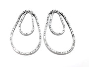 Hammered Drop Charms Antique Silver Plated Charm (54x34mm) G27894