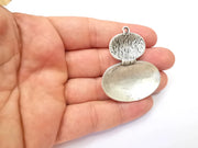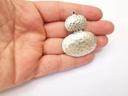 Hammered Oval Domed Charms Antique Silver Plated Teardrop Charms (50x41mm) G28589