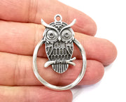 Owl Circle Charms, Antique Silver Plated (44x32mm) G33410