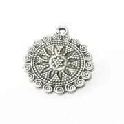 Silver, round antique silver plated charms are made of nickel free and lead free zinc alloy metal. Size : 39x33mm