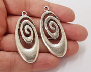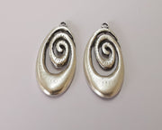 2 Oval swirl silver charms Antique silver plated charms (51x23mm) G25943