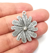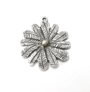 Flower Charms, Antique Silver Plated Dangle Charms (38x32mm) G34127
