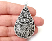 Drop charms are made of nickel free and lead free antique silver plated zinc alloy metal. Size : 60x33 mm.