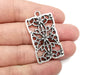 Rectangle Filigree Flower Dangle Charms, Antique Silver Plated Charms (44x25mm) G29039