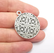 Flower, round antique silver plated charms are made of nickel free and lead free zinc alloy metal. Size : 39x32mm