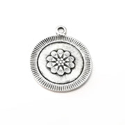 Flower round antique silver plated charms are made of nickel free and lead free zinc alloy metal. Size : 39x33mm Perfect charms for earrings, pendants, key chains, zipper pulls, gift decoration, handbag charm and much more!