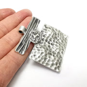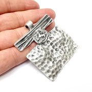 Horse Hammered Pendant, Antique Silver Plated Pendant (62x55mm) G34490