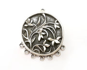 Flower Round Pendant, Charms, Connector Antique Silver Plated (44x36mm) G33479