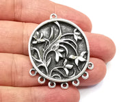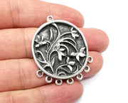 Flower pendant connector are made of nickel free and lead free antique silver plated zinc alloy metal. Size : 44x36mm.