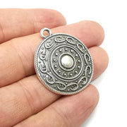 Silver round antique silver plated charms are made of nickel free and lead free zinc alloy metal. Size : 36x32mm