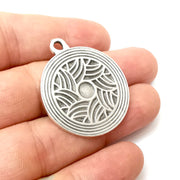 Silver round antique silver plated charms are made of nickel free and lead free zinc alloy metal. Size : 38x33mm