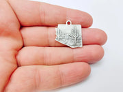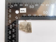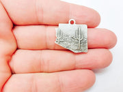 Desert Landscape Pendant, Boho Western Cactus Charm, Southwestern Jewelry, Mountain Nature Earring, Antique Silver Plated 25x24mm G37311