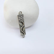 This slim connector bar features a raised daisy flower motif with flowing stem and leaf details, creating a delicate botanical accent for jewelry designs. Its narrow rectangular form is ideal for minimalist bracelets, layered necklaces, anklets, or as a linking element in nature-inspired and floral-themed jewelry projects.