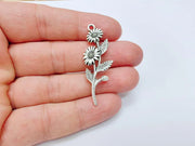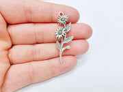 Flower Branch Pendant, Botanical Charm, Daisy Floral Necklace Supply, Nature Inspired Jewelry Making, Antique Silver Plated 46x17mm G37143