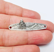 Mountain Tree Bar Pendant Connector, Forest Landscape Bracelet Charm, Nature Outdoor Necklace Jewelry, Antique Silver Plated 44x13mm G37101