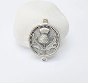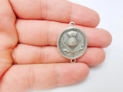 Thistle Connector Charms, Silver Flower Charms, Boho Charms, Earring Charms, Necklace Parts, Antique Silver Plated 33x24mm G37220