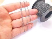1mt(3.3ft) Sterling Silver Black Rolo Chain 925 Solid Silver Soldered Rolo Chain (1,6mm) G30062