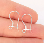 2 Solid Sterling Silver Earring Hook, 925 Silver Earring Wire Findings (20mm) G30075