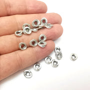 10 Round Disc Beads, Middle Hole, Hoop Connector, Discs Findings, Antique Silver Plated (9mm) G36050