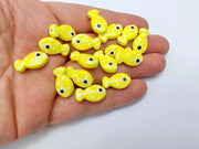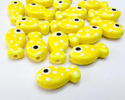 These adorable yellow porcelain fish beads are perfect for adding fun and charm to your DIY jewelry and craft projects. Featuring a glossy finish, playful white polka dots, and a sweet cartoon-style eye, these beads are ideal for summer designs, children's accessories, or beach-themed creations.