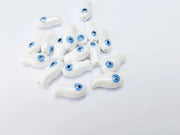 These ceramic fish-shaped beads in vibrant white are ideal for jewelry making and craft projects. Featuring a fun and playful design with detailed eye accents, they are suitable for creating necklaces, bracelets, earrings, keychains, and more. Their lightweight structure and drilled hole make them easy to work with for DIY enthusiasts and professional designers alike.