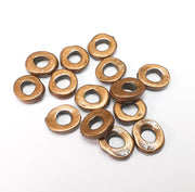10 Copper Rondelle Beads, Copper Round Hole Beads, Bracelet Beads, Disc Beads, Necklace Beads, Antique Copper Plated Metal 9mm G35215