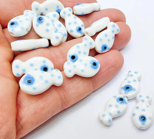 View full details4 Porcelain Fish Beads, White with Blue Dots, Ceramic Animal Beads, Flat Back, Cute Fish Charms, Jewelry Making Supplies 19x10mm G37033