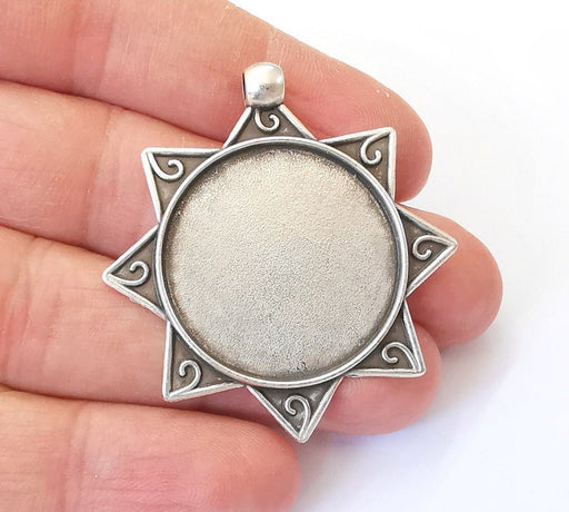 Frame Pendant Blank Antique Silver Plated Pendant (48x44mm) (30mm Blank Size) G24989