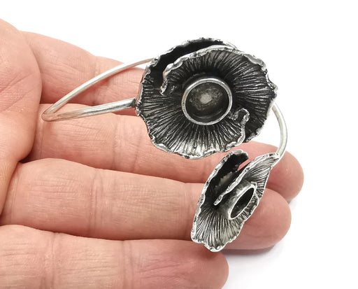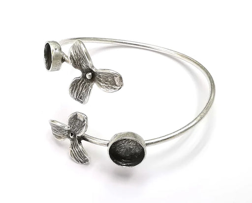 Flowers Silver Bracelet Blank Resin Cuff Dry Bezel Cabochon Base Adjustable Antique Silver Plated Brass (10-8mm Blanks) G26826