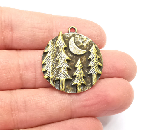 View full detailsForest Landscape Pine Tree Crescent Moon Round Charms Pendant Antique Copper Plated Charms (31x28mm) G28008