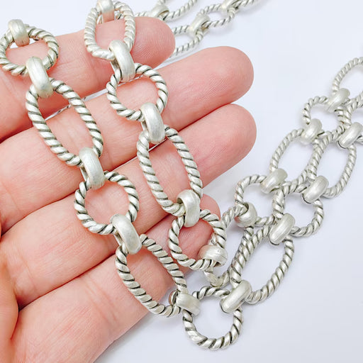 Antique Silver Twisted Oval Cable ChainMaterial : Zinc Alloy, antique silver platedColor: Antique SilverSize : 25x14 mmQuantity : 1 Meter - 3.3 Feet