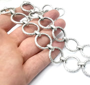 Hammered Antique Silver Round Chain (23mm) Antique Silver Plated Chain (1 Meter - 3.3 feet ) G34527