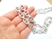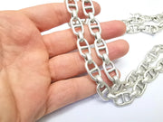 Large Silver Chain, (1 Meter - 3.3 feet ) Specialty Chains, Necklace, Bracelet, Belt, Bag Chain, Jewelry Accessory Chain, Antique Silver Plated (21x11mm) G34983