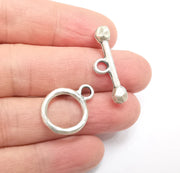 2 Silver Toggle Clasps Antique Silver Plated Toggle Clasp Findings 23x17mm+29x8mm G29432