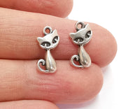 10 Cat Charms Antique Silver Plated Charms (15x11mm) G21196