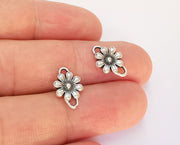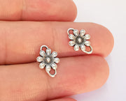 10 Flower Charms Connector Antique Silver Plated Charms (14x9mm) G22411