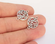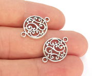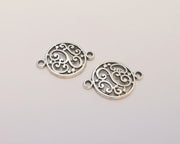 10 Round Filigree Charms Connector Antique Silver Plated Charms (20x14mm) G22304