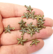 10 Bronze Starfish Charms, Boho Charms, Bracelet Charms, Earring Charms, Necklace Parts, Antique Bronze Plated 14x11mm G35468