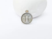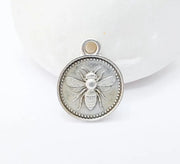 This beautifully detailed bee pendant is crafted from antique silver plated zamac in a round coin shape. Both sides feature the same elegant bee design, offering versatility and symmetry for your creations.