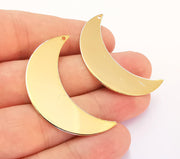 2 Crescent Charms 24k Shiny Gold Brass Charms , Nickel free and Lead free (44x26mm) G22028