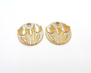 2 Flowers Charms Shiny Gold Plated Charms (24mm) G21320