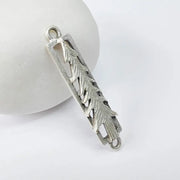 This pine tree connector charm is crafted from high-quality zamac metal with an antique silver plated finish. The raised evergreen tree motif and open rectangular frame create a modern yet organic aesthetic. Its slim elongated form and dual loop structure allow easy connection in various jewelry applications. The nickel free and lead free composition ensures safe and comfortable use for everyday jewelry making.