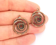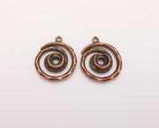 2 Spiral Bezel Charm Antique Copper Charm 27x22mm (Blank Size 7mm) G22358