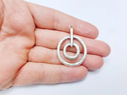 Double Circle Pendant, Geometric Boho Charm, Modern Minimalist Jewelry, DIY Rustic Necklace Craft, Antique Silver Plated 42x30mm G36910