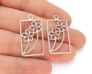 4 Flowers Frame Charms Antique Silver Plated Charms (34x18mm) G22514