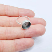 This adjustable ring base features a clean round bezel with a classic smooth band design, created for cabochon, resin, glass, or stone applications. Its timeless form makes it a reliable foundation for both minimalist and statement handmade ring designs.