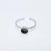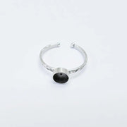 This adjustable ring base features an round bezel paired with a subtly textured band, offering a balanced blend of classic form and handcrafted character. Designed for cabochon, resin, glass, or stone applications, it provides an elegant and versatile foundation for custom handmade ring designs.
