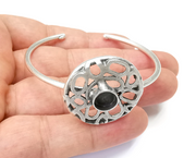 Adjustable Round Bracelet Bases, Resin Cuff Blanks, Cabochon Bezel, Mosaic Mountings, Dry flower, Antique Silver Plated Brass (8mm) G28416