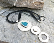Antique Silver Plated Brass Necklace with Turquoise Gemstones and Real Pearl SR40