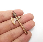 Copper Axe Charms, War Charms, Ethnic Earring Charms, Copper Rustic Pendant, Necklace Parts Charms are made of nickel free and lead free antique copper plated zamac (zinc alloy) metal. You can use these charms on earrings, pendants, bracelets, key chains, zipper pulls, handbags accessory, gift decoration, dangle earrings, DIY charms and it in many more different fields.